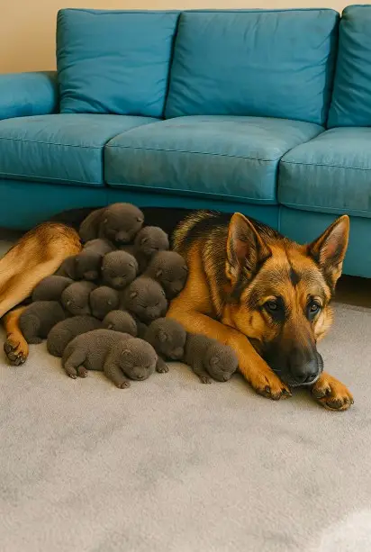La chienne, épuisée, leva la tête et lécha l’un des petits. Dans ses yeux, on pouvait lire la tendresse, l’amour et une fierté discrète.